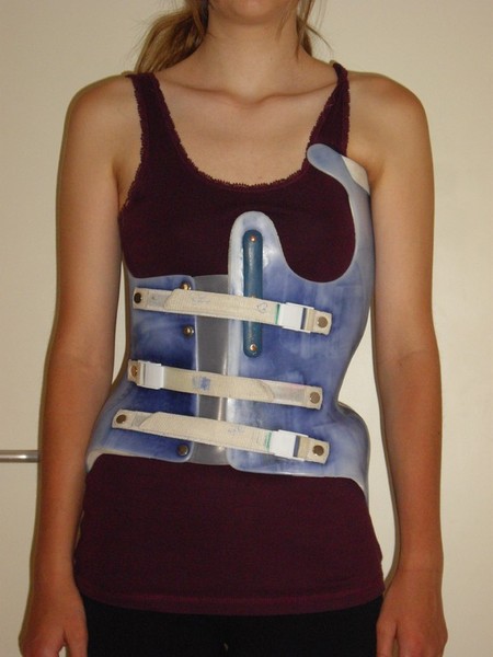 Das Korsett hat die Aufgabe, die Krümmungszunahme aufzuhalten, bzw. korrigierend auf das noch vorhandene Wachstum der Wirbelsäule einzuwirken und sollte unbedingt von einem auf Korsettbau spezialisierten Orthopädietechniker angefertigt werden.